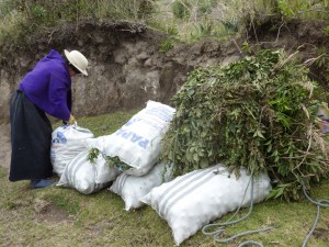 Another interesting part of the whole process of a Canasta Comunitaria is the selection of products for quality and quantity, which is done by the producers themselves at their own plot. On the photos below you can see one of the communities (Tzimbuto, Licto) involved in the Canasta Comunitaria, where some of the villagers are selecting potatoes, herbs and cultivating their land. The selection happens usually one day before the actual Canasta day and early the next morning, one or two of the villagers will bring the products down to Riobamba to be sold at the Canasta. This logistical part is still complicated for both the small farmers, Utopia and other Canasta Comunitaria organizations, and yet there has to be found a solution to solve this complication.