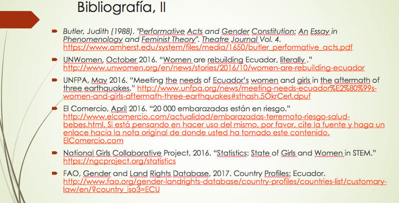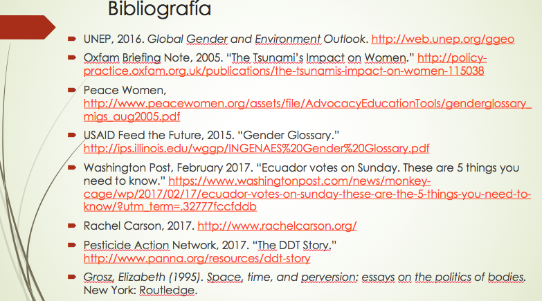 EkoRural’s work in the Central Highlands of Ecuador is mostly with women farmers. This past Women’s Day on March 8th, one of EkoRural’s interns, Ginette Walls, gave a presentation on Gender and the Environment. She discussed feminist theory, the difference between gender and sex, and between masculinity and femininity. Ginette presented a timeline of the theories and movements around gender and the environment. Prominent individuals and movements mentioned included Rachel Carson, Vandana Shiva, Wangari Maathai and the Green Belt Movement, and the Chipko movement. Also discussed was the treatment of gender within international environmental treaties and efforts such as the UNFCCC, the Convention on Biological Diversity, and the 2030 Agenda for Sustainable Development.